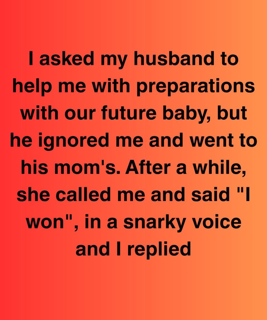 I asked my husband to help me with preparations for our future baby, but he ignored me and went to his mom’s. After a while, she called me and said, “I won,” in a snarky voice. And I replied, “Congratulations—hope he fills your crib instead of ours.”