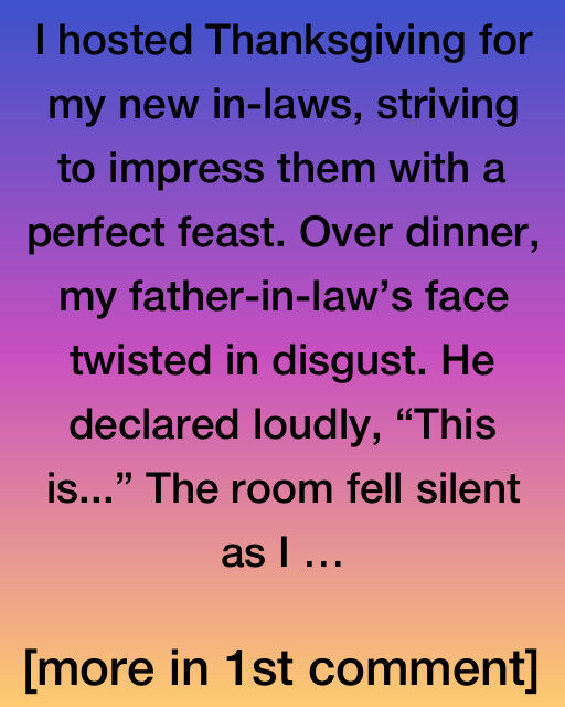 I hosted Thanksgiving for my new in-laws, striving to impress them with a perfect feast. Over dinner, my father-in-law’s face twisted in disgust. He declared loudly, “This is…” The room fell silent as I braced for the worst. His eyes met mine, and I felt my stomach drop, fearing that my best efforts would be met with disappointment.