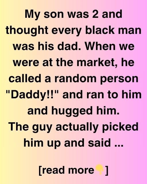 “Hey,” I said, smiling. “You probably don’t remember, but a little boy once called you ‘Daddy’ at the market. That was my son.”