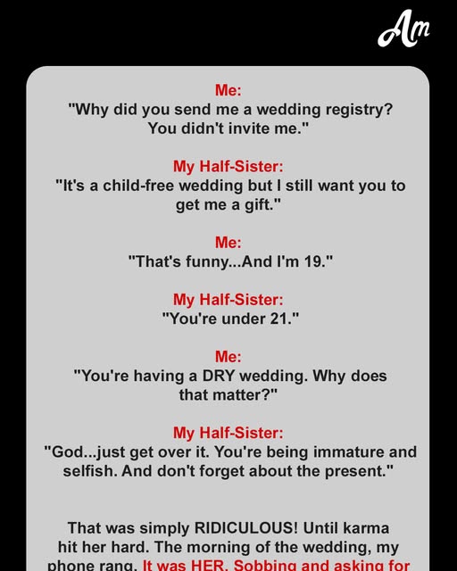 I read it twice. Child-free? I’m 19 years old. I can vote, I can serve in the military, and I can take on crushing student debt that’ll follow me to my grave. But apparently, I can’t attend my half-sister’s wedding because I’m a “child.”