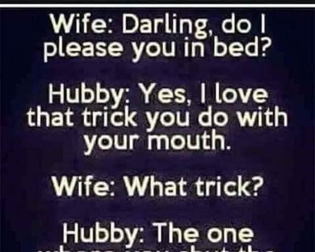 Wife: My dear, do I satisfy you in our intimate moments?