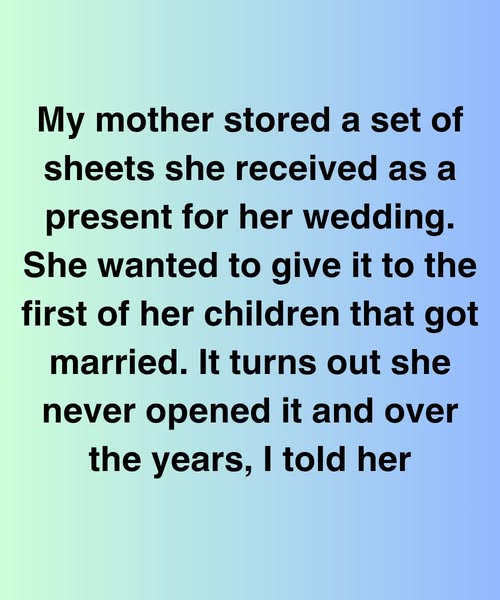 The wedding was set for May. My mother beamed like she’d been waiting her whole life. One week before the wedding, she finally opened that drawer, pulled out the box of sheets, still in its yellowing tissue paper, and handed it to me.