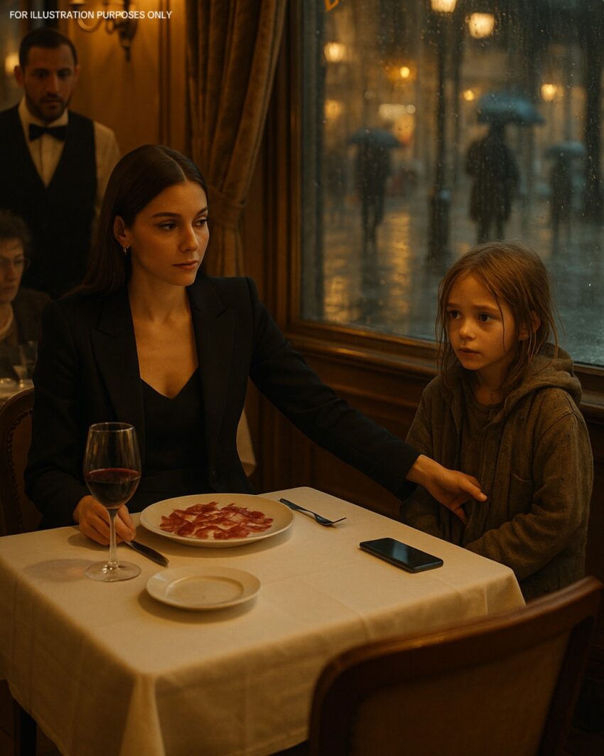 Outside, in the drizzle and cold, a 10-year-old girl in dirty, torn clothes stared at the restaurant with blue eyes clouded with hunger. Her name was Lucía, and she hadn’t eaten for three days. Gathering her courage, she pushed open the glass door and approached Carmen, trembling.