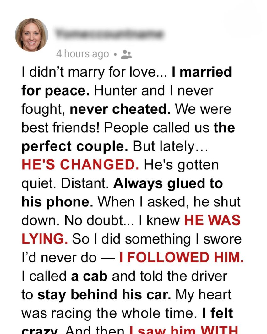 I never married for love. I married for peace, for stability, and to silence questions from family. Hunter and I built a quiet life together — no passion, no drama, just respect and companionship. People often said we were the “perfect couple,” and in some ways, we were.