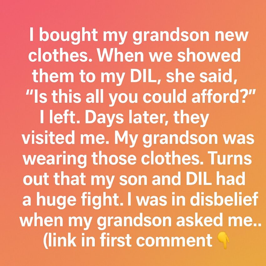 I bought my grandson some new clothes. Nothing expensive, just a few nice shirts and pants that I thought he would look handsome in. I was excited to see him wear them, but when we showed them to my daughter-in-law, she frowned. “Is this all you could afford?” she asked, her voice sharp. The words stung more than I could admit. I didn’t want to cause a scene, so I quietly excused myself and went home. But her comment stayed with me, echoing in my heart.
