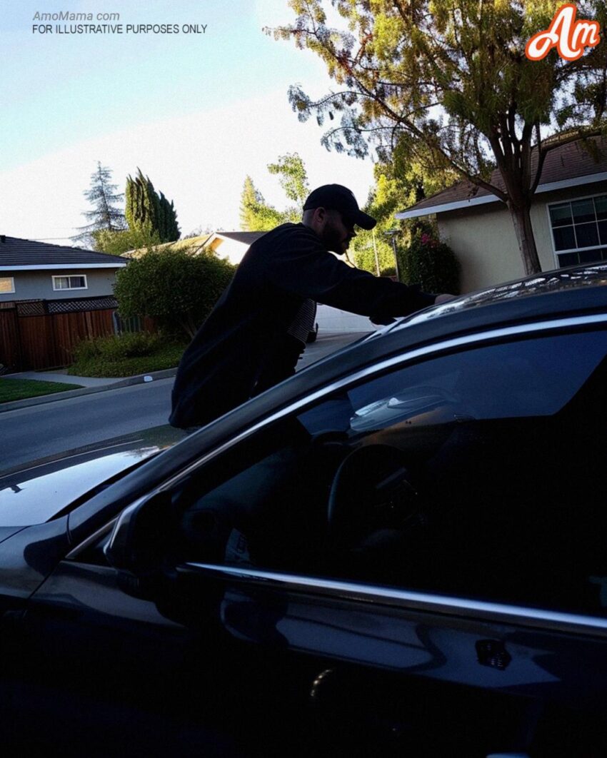 He didn’t answer immediately. Instead, he opened the driver’s door and dropped to his knees beside the car and reached under the seat. For a moment, nothing happened.