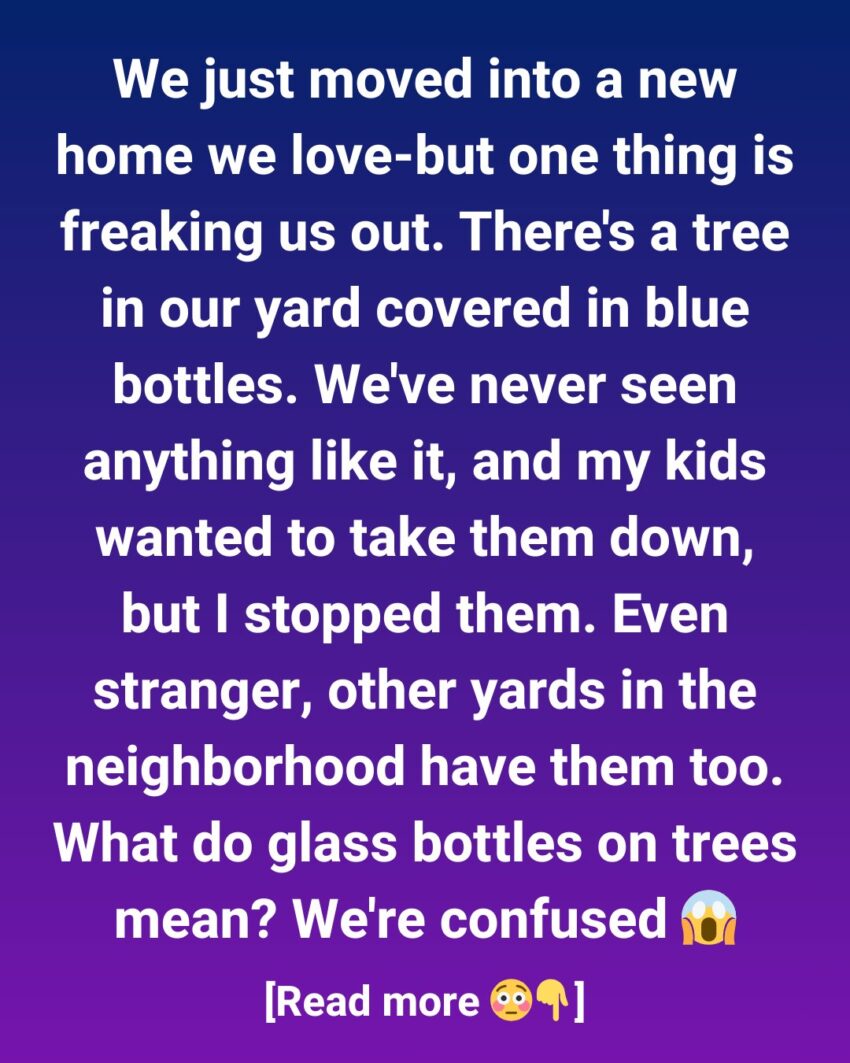 Right in the middle of the yard stood a tree covered in glass bottles. Dozens of them.