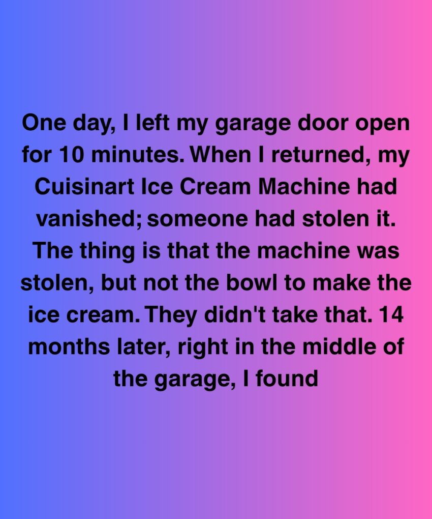 The odd thing was, the thief didn’t take the entire set. They left behind the freezer bowl — the most crucial part needed to make the ice cream. It didn’t make sense. I stood there scratching my head, feeling a mix of anger and confusion. Who would steal an ice cream machine but not the part that actually makes the ice cream? At first, I suspected a neighbor’s kid pulling a prank, but weeks passed with no clues. Eventually, I gave up hope of ever seeing it again.