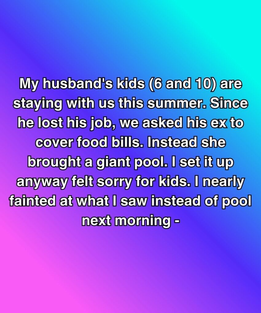 My husband’s kids (6 and 10) are staying with us this summer. Since he lost his job, we asked his ex to cover food bills. Instead, she brought a giant pool. I set it up anyway—felt sorry for the kids. I nearly fainted at what I saw instead of the pool the next morning—
