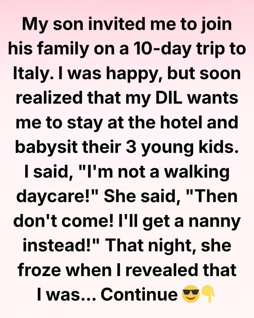 When I later revealed that I was still going and covering all my own expenses, my daughter-in-law froze. My son quickly stepped in and tried to charm me into agreeing to watch the kids, insisting that “as a grandma, it was expected of me.”