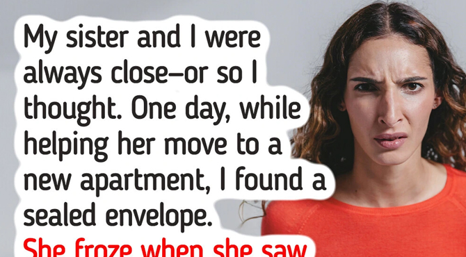 My sister and I were always close—we told each other everything. Or at least, I thought we did. One day, while helping her move to a new apartment, I came across a sealed envelope tucked into one of her books. She froze when she saw me holding it, then quietly said, “You’d better sit down.”