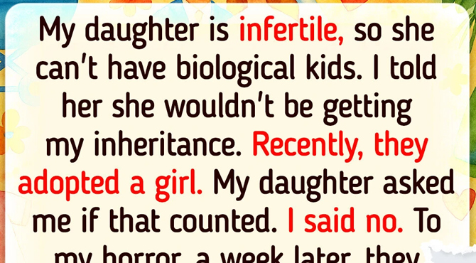 Recently, they adopted a girl. My daughter asked me if that counted, but I said, ‘No, she’s not biologically yours.’ To my horror, a week later, they showed up at my doorstep with adoption papers in hand—and a lawyer.”