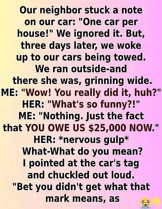 One Car Per House? Neighbor’s Plan Backfires Big Time