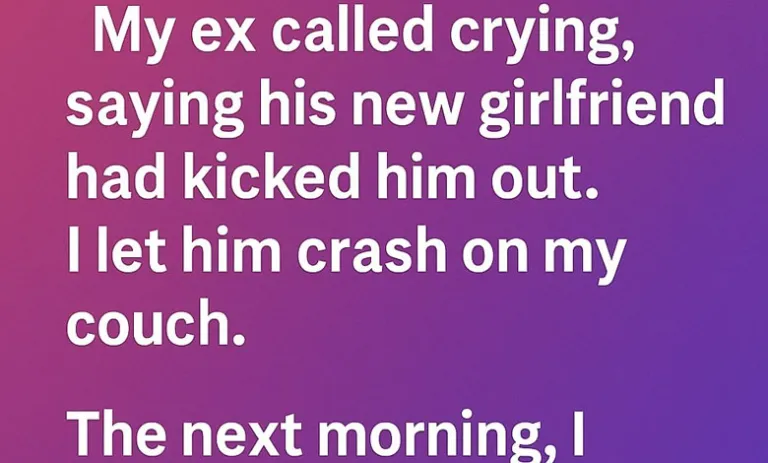 My ex called crying, saying his new girlfriend had kicked him out. I let him crash on my couch. I didn’t expect anything dramatic to happen; I simply felt it was kind to offer someone I once cared about a place to stay. He fell asleep almost immediately, exhausted and overwhelmed, while I returned to my own quiet evening.