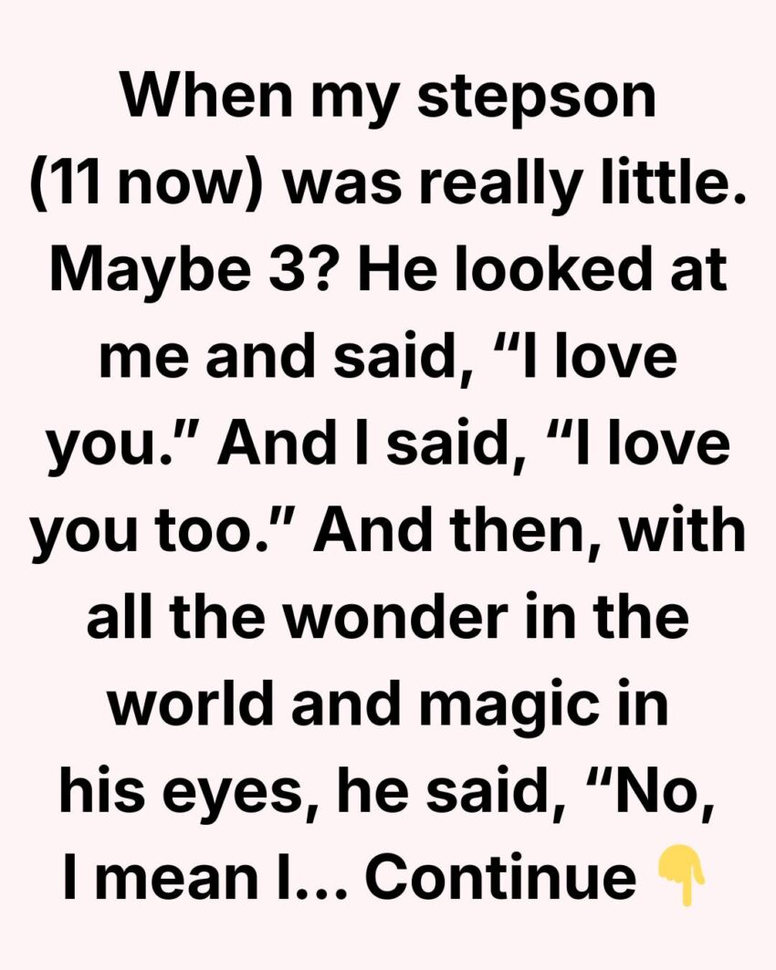 When my stepson (11 now) was really little. Maybe 3? He looked at me and said, “I love you.” And I said, “I love you too.” And then, with all the wonder in the world and magic in his eyes, he said, “No, I mean “I love you like you’re mine.” Those were the words he whispered, stumbling over them as though he was discovering a new language for the very first time. He didn’t understand labels yet—step, half, biological—he just knew how he felt. At that moment, something gentle and warm unfolded inside me, the kind of feeling that doesn’t have a proper name. I had entered his life slowly, careful not to force myself into the space his mother once held. But children have a way of seeing past adult fears. They see effort, kindness, consistency, and they respond with honesty that can melt even the hardest emotions. His tiny hands reached out to me that day, and I realized he wasn’t trying to replace anyone—he was simply choosing me.