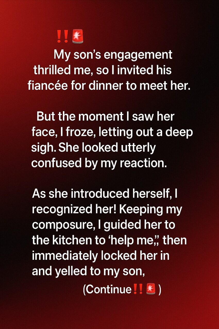 My son’s engagement thrilled me, so I invited his fiancée for dinner to meet her. But the moment I saw her face, I froze, letting out a deep sigh. She looked utterly confused by my reaction. I tried to compose myself, forcing a smile to hide the storm inside me. She was lovely—polite, soft-spoken, clearly nervous—but none of that eased the jolt of recognition that hit me the second she walked through the door. I had seen her before, years ago, in a moment that had nothing to do with romance and everything to do with a choice I had spent years hoping my son would never cross paths with. Trying not to alarm either of them, I excused myself under the pretense of needing help in the kitchen and gently guided her there, heart pounding. The moment she stepped in, I quietly turned the small lock on the pantry door and stepped back.