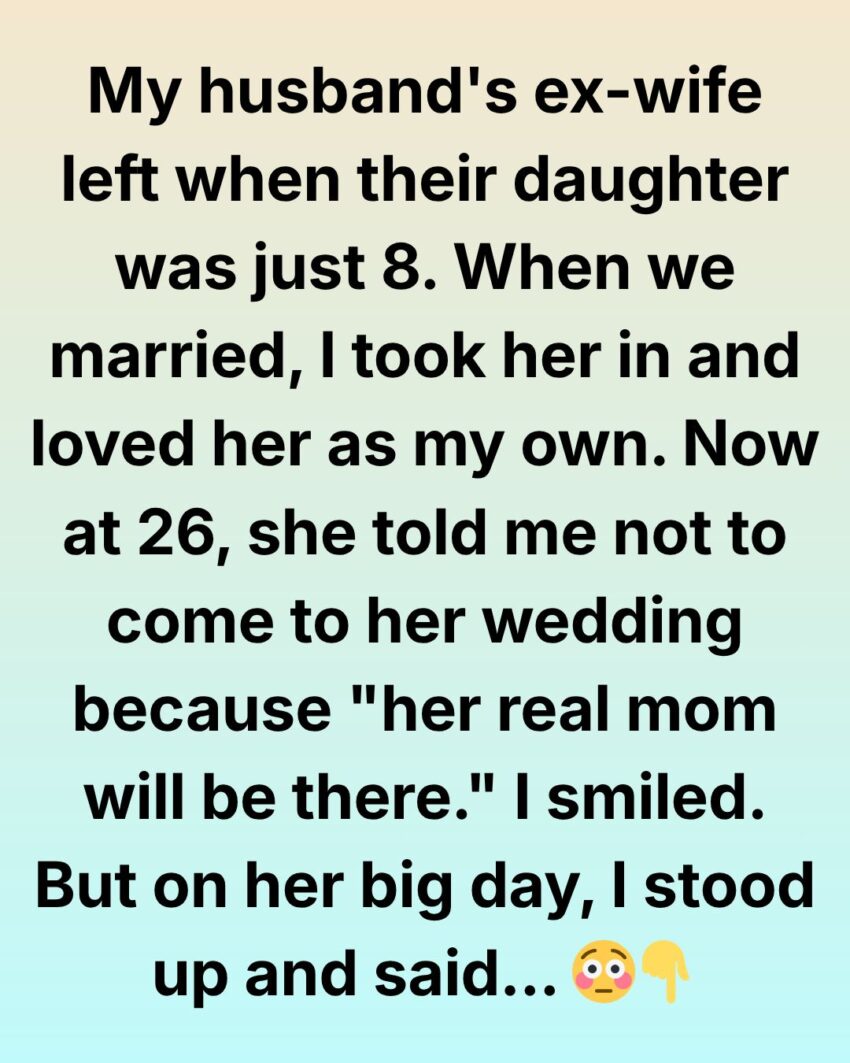 Her explanation was simple but harsh: “My real mom will be there. She won’t feel comfortable around you.”