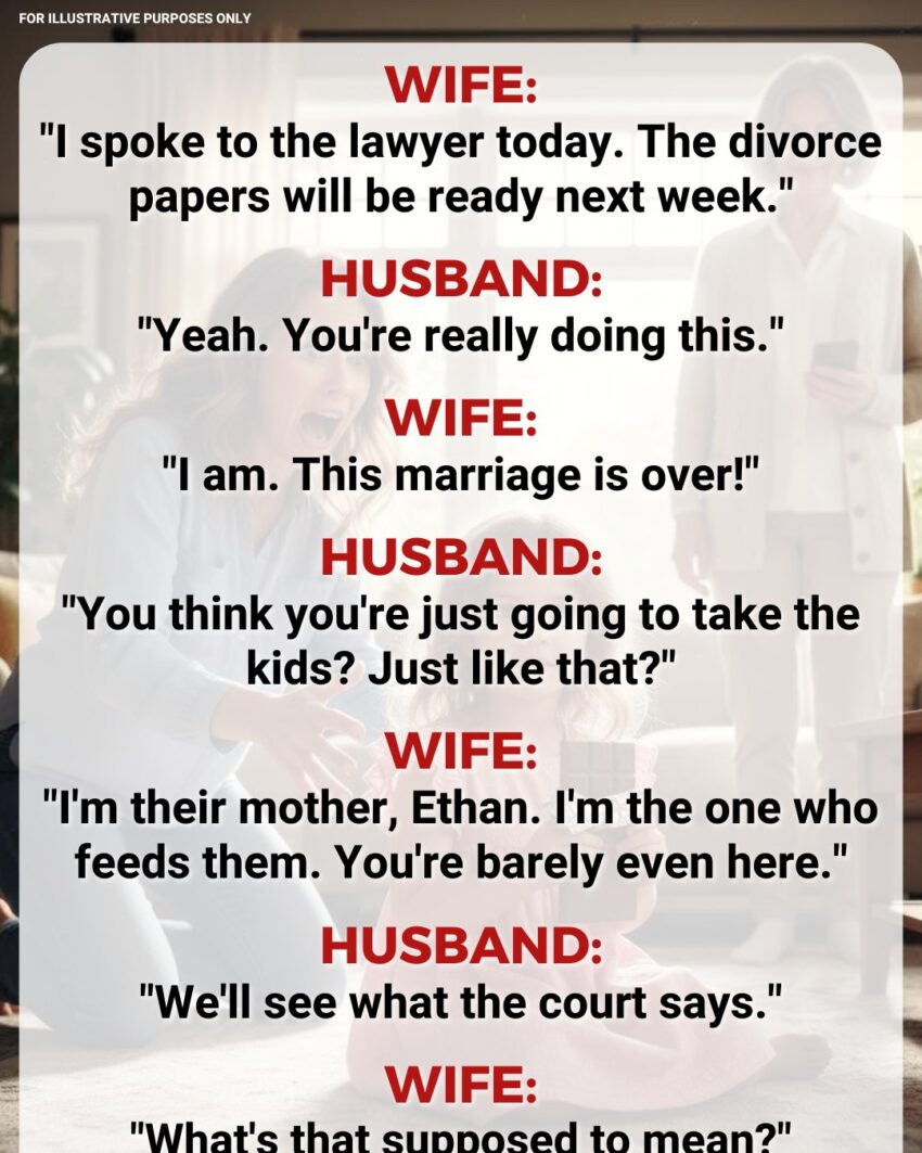 I blinked, stunned. “I’m their mother, Ethan. I’m the one who feeds them. Bathes them. Packs their lunches. Helps them sleep. You’re barely even here.”