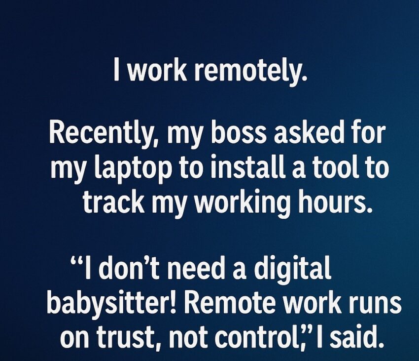 Recently, my boss asked for my laptop to install a tool to track my working hours. “I don’t need a digital babysitter! Remote work runs on trust, not control,” I said.