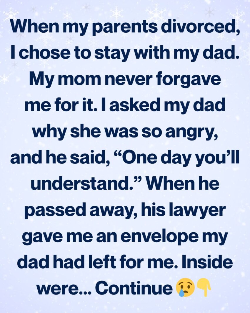 When my parents divorced, the world I knew split clean down the middle. Everyone kept asking who I wanted to live with, as if a child could simply choose between two hearts. In the end, I stayed with my dad. He cooked my favorite meals, drove me to school, and always made sure I felt safe.