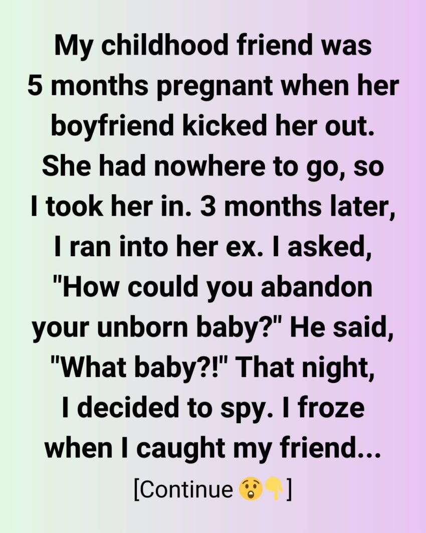 Three months later, I ran into her ex. I asked, “How could you abandon your unborn baby?” He said, “What baby?!” That night, suspicious and unsettled, I decided to spy on my friend as she went to her room.